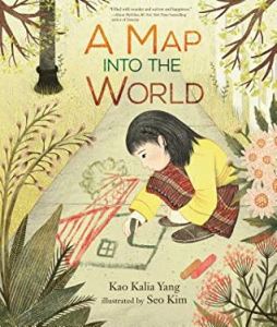 Per an end note, A Map into the World is based upon the author’s actual neighbors, Ruth and Bob, and the author’s own family. She also is an #OwnVoices writer, familiar with Hmong culture and, presumably, problem-solving. I love how she uses aspects of this culture to problem solve and uses the metaphor of a map as a means to adapt to difficult life changes. This is her first picture book.Visit Yang’s website to see more of her books.